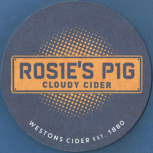 A Westons Rosie's Pig beer mat (W9.4 x H9.4cm).